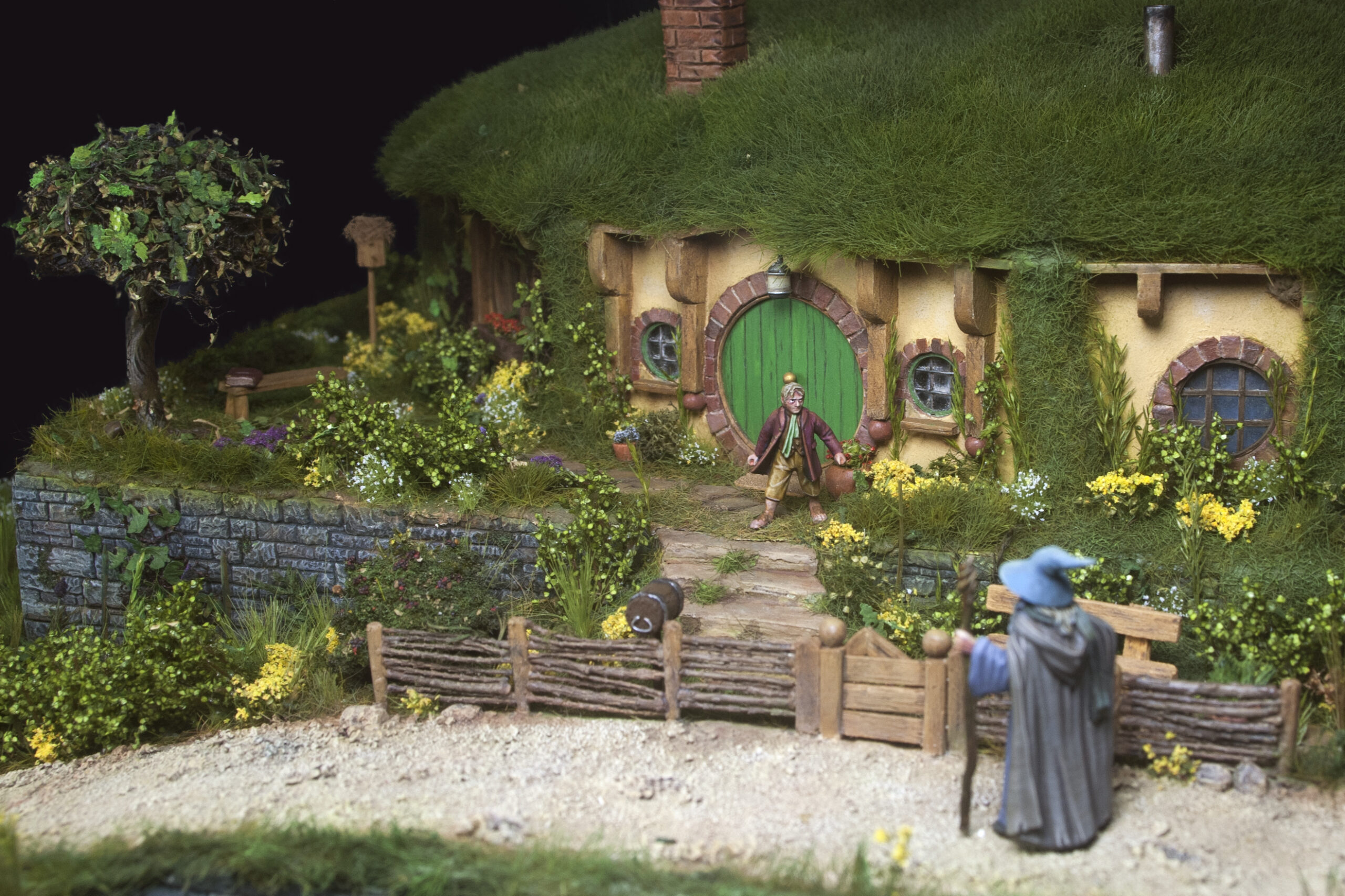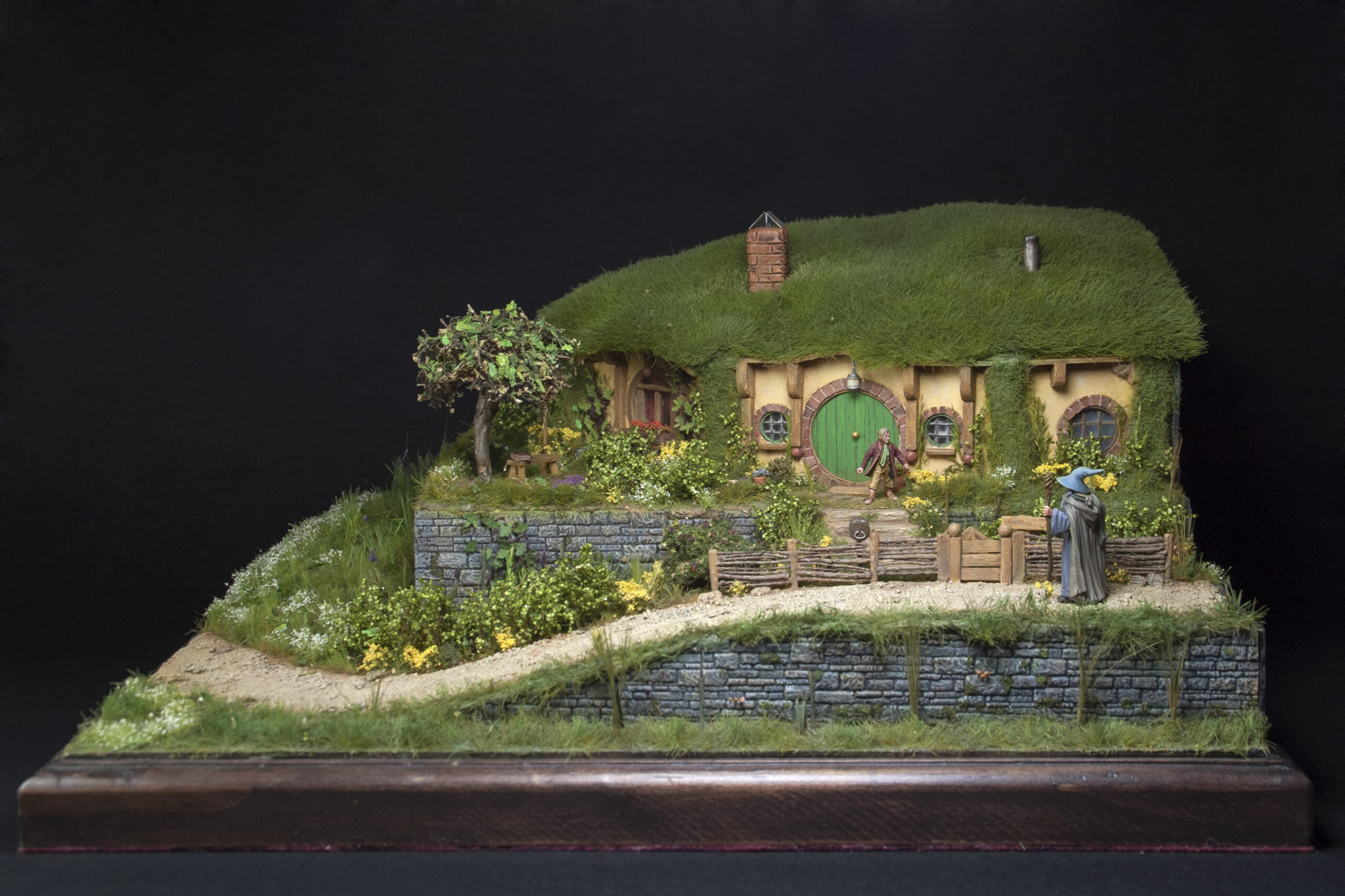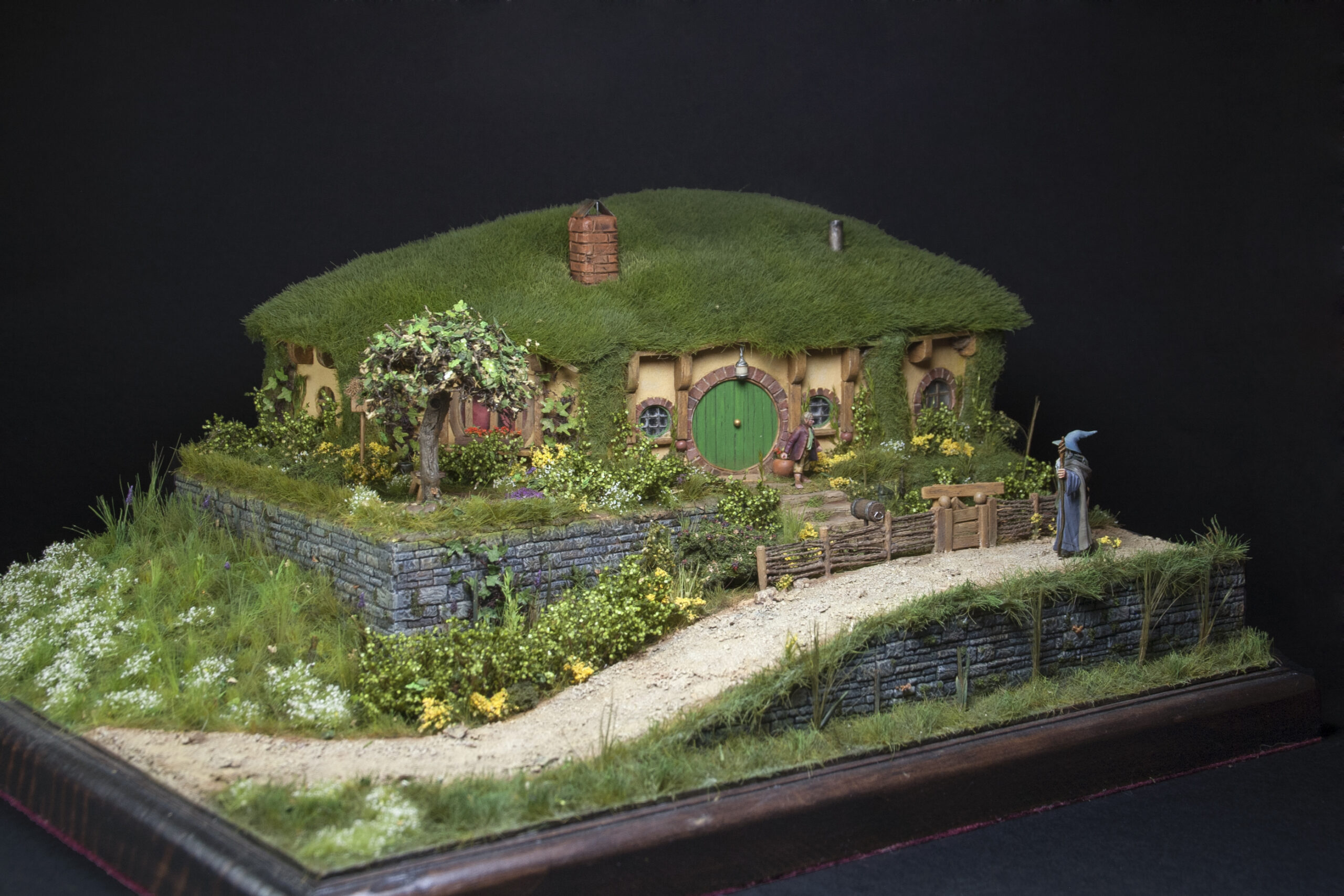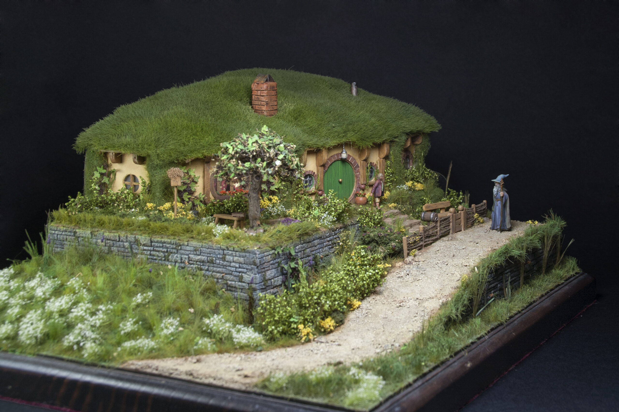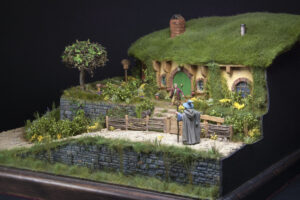 The entire diorama has been hand built from scratch, using natural and artificial materials recreating the aesthetics of the LOTR movies.