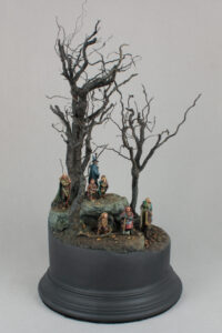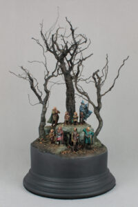 The miniatures are hand painted and the entire scene has been built from scratch using natural and artificial materials.