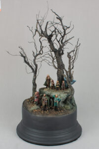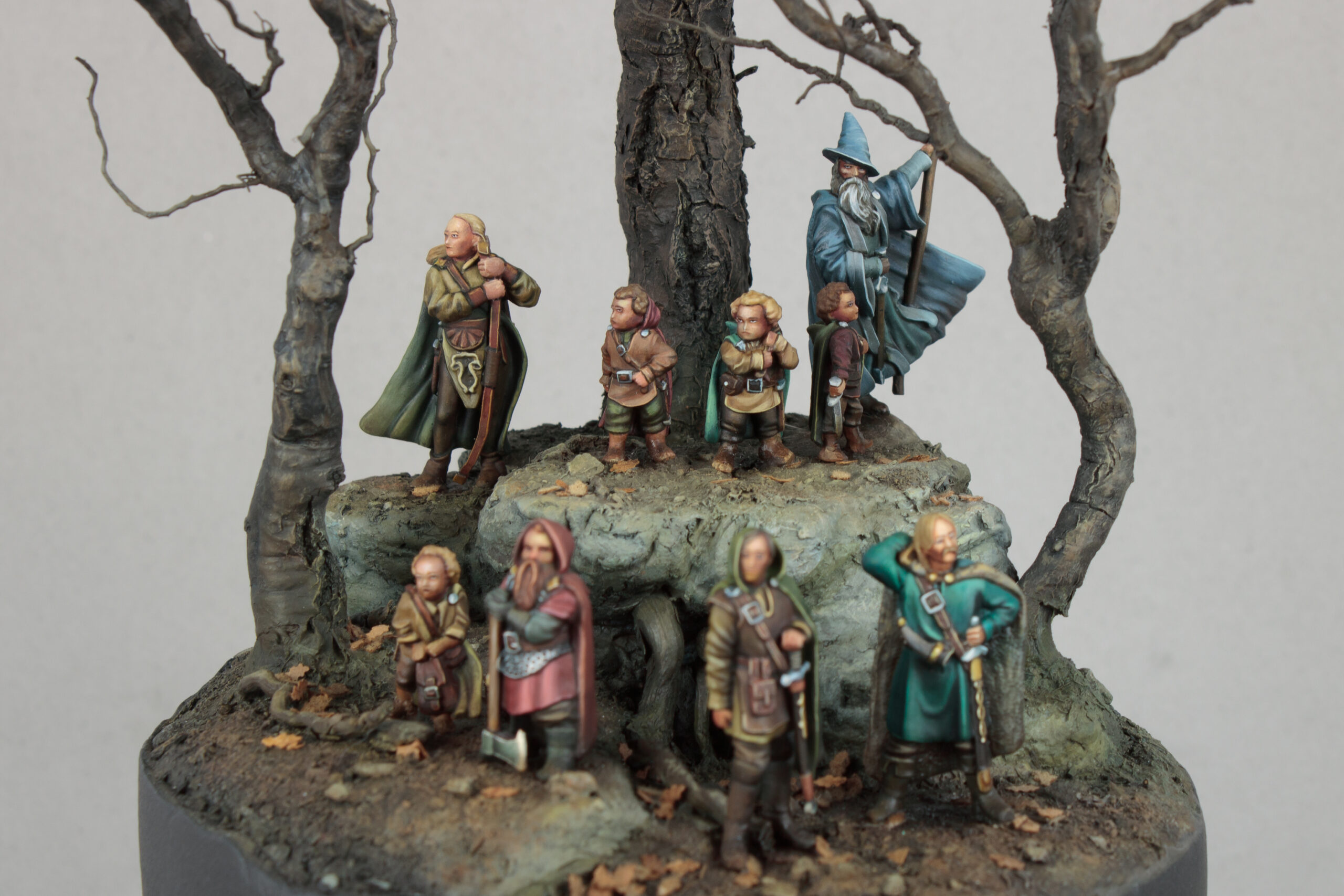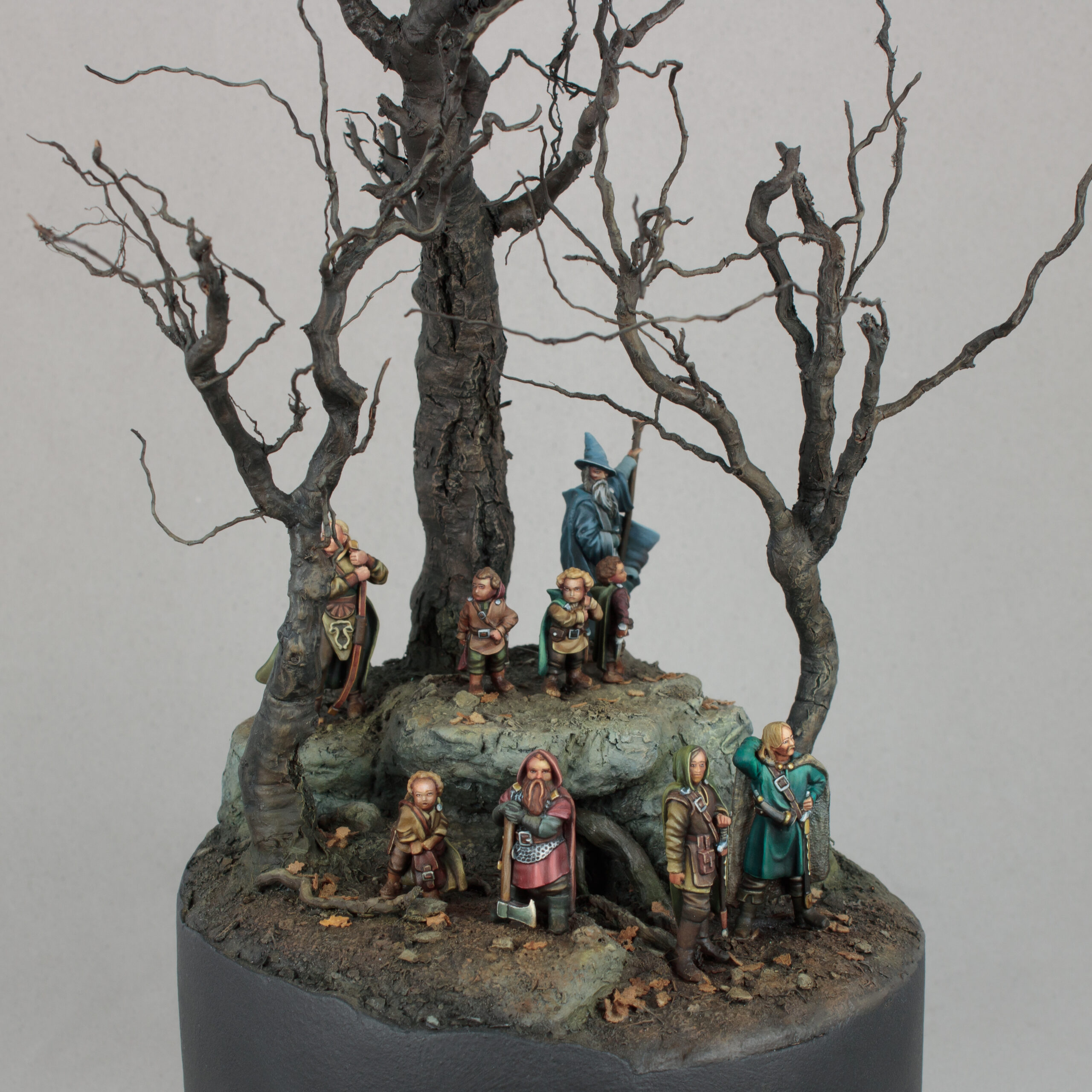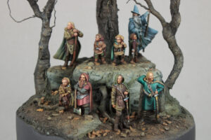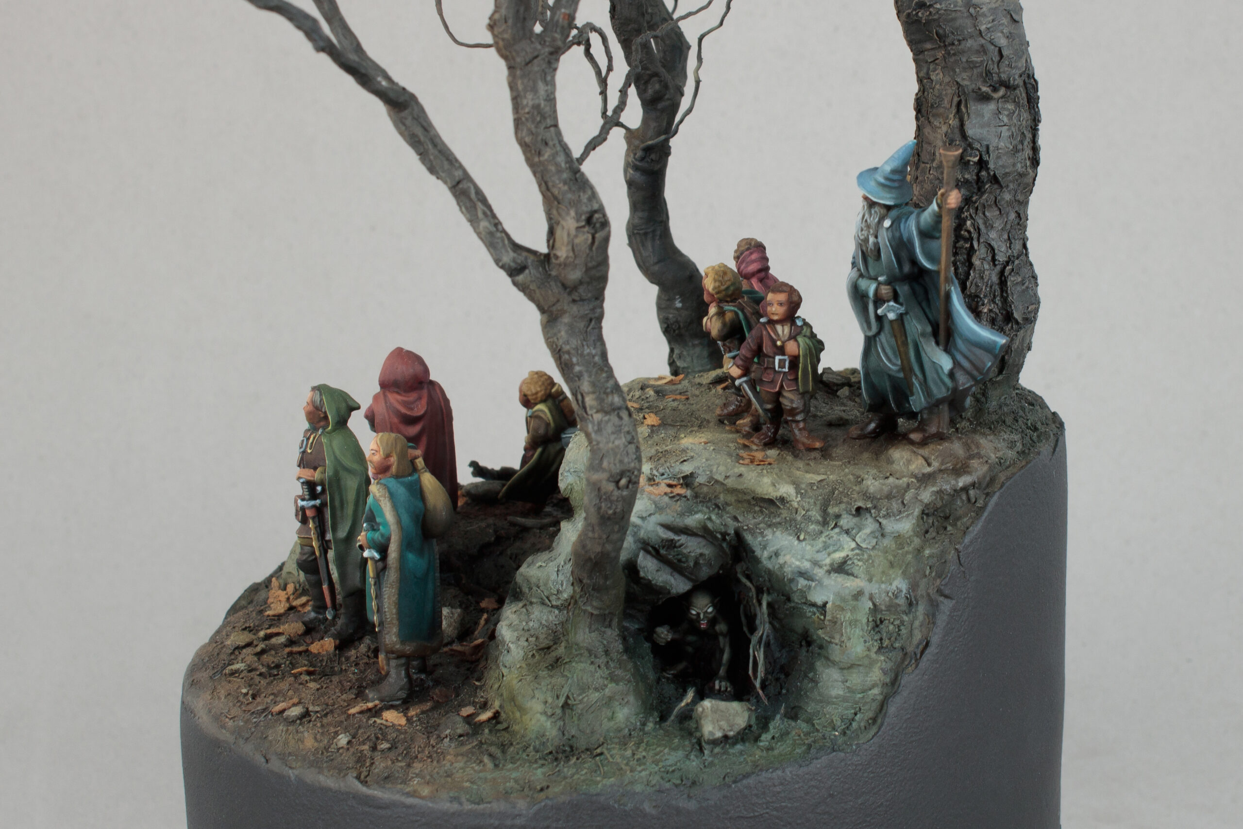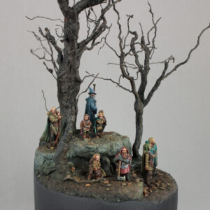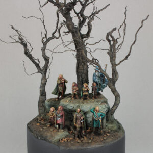Diorama depicting a stop during the journey of the Fellowship of the Ring. All members of the Fellowship are represented in the scene, including their persecutor Gollum.